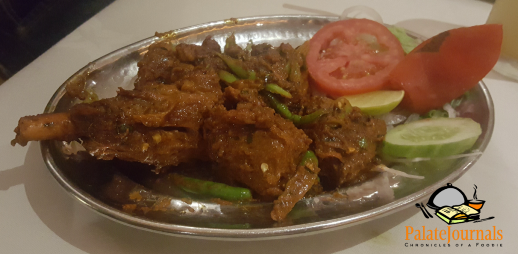 For once I can safely say that all the starters were top notch where Mutton Gilafi kebab was excellent. Gilaf means cover in Hindi/Urdu, as the name goes mutton pieces are wrapped & covered with an egg covering making it an excellent item to have as soon as you cut it open